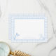 Comparte notas dulces del vivero de tu pequeña con esta encantadora tarjeta de papelería personalizada. Con un fondo de gingham azul clásico y ilustraciones de perro dibujados a mano, este diseño combina un estilo de perrito intemporal con un carácter lúdico. Perfecto para notas de agradecimiento, invitaciones o correspondencia diaria, estas tarjetas son totalmente personalizables con el nombre o apellido de su hijo. Esta papelería, una manera cuidadosa de enviar amor y gratitud, es un delicioso regalo para los padres y una elegante adición a cualquier colección de guarderías.