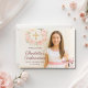 Tarjeta De Agradecimiento Girl photo pink bow cross First Holy Communion