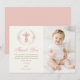 Girl's Christian Baptism Pink Floral Bow Photo Thank You Card