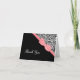 Una carta de agradecimiento, de color rosa y negro, con una moderna impresión de leopardo negro y blanco y una cinta rosa claro femenina atada a un elegante arco. Personalice añadiendo un mensaje especial de agradecimiento dentro. Imagen plana impresa, no arco real.