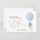 Tarjeta De Agradecimiento Globo azul, eucalipto, vegetación, primer cumpleañ
