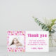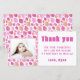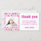 Tarjeta de agradecimiento de cumpleaños con foto de niña con globo rosa. Diseño adorable con patrón de globo rosa. Personaliza la tarjeta con tu foto, nombre y texto.