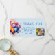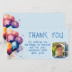Globos Coloridos Cumpleaños Infantil Foto Tarjeta de agradecimiento. Tarjeta de agradecimiento de cumpleaños para la fiesta de cumpleaños de los niños. Este diseño viene con globos en colores rojo, azul, rosa y verde sobre un fondo azul. Personalice la tarjeta con el nombre de su hijo, mensaje de agradecimiento y foto.