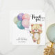 "Podemos esperar con premura". ¡Celebra con este fiesta de ducha de bebé con temática de oso de peluche! Acuarela lindo oso de peluche con globos de colores. Fondo de fondo con cielos color azul-rosado. Elementos coincidentes disponibles.