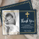 Simple, elegant navy blue christening and baptism thank you cards. Send thanks to family and friends with this modern personalized thank you religious flat card. It features hand lettered ”Thank You” script, around double faux gold foil frame on navy background. This modern beautiful photo thank you card will also be perfect for baptism / christening / naming ceremony / confirmation and holy communion thank you card for boy or girl. #3354