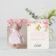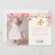 Se comió un poco de torta, sonrió por la cámara y abrió sus regalos. Tu pequeño y dulce ciervo tiene un año (o dos o tres...) y se divertió un día lleno de amigos y familia. ¡Inserta tu propia foto y diles cuánto apreciaste celebrar su día especial con ellos! Flores acuarelas pintadas a mano rodean la foto y el texto, con un pequeño ciervo dulce y mariposa en oro encima del texto. El oro sigue al revés.