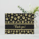 Tarjeta De Agradecimiento Golden Paw Prints on Black with Custom Name
