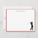 Personalized, Simple and elegant Golf lovers Flat note card featuring golfer silhouette with a thin red border. Make great gifts.
