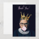 Ruth Bader Ginsburg vistiendo una corona de oro soplando un chicle rosa ¡Gracias! texto
