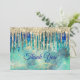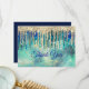 Tarjeta de agradecimiento con gotas de brillo dorado y turquesa chic. Tarjeta de Navidad brillante y linda con brillo. Perfecta para enviar a familiares o amigos durante la temporada navideña, cumpleaños o cualquier otra ocasión. Para hacerla aún más especial, está adornada con hermoso brillo falso. Este diseño también se puede transferir a cualquier producto en Zazzle. Puedes personalizarlo con tu propio texto e información.