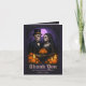 This elegant gothic personalized wedding thank you folded card features a skull candy skeleton couple in formal wedding attire with orange flowers and candles. The inside of the card has a custom thank you message and signature. . Congrats on your wedding! Images generated with AI.