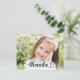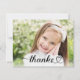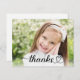 Modernas tarjetas planas personalizadas de agradecimiento cuentan con una foto con negro (se puede modificar) Gracias texto con un acento cardíaco lindo. Perfecto para que los niños envíen como notas de agradecimiento por regalos de cumpleaños, regalos de primera comunión y más. La tarjeta incluye espacio en la parte posterior para una nota manuscrita.