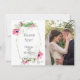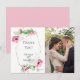 TARJETA DE AGRADECIMIENTO CON FOTO | Amapolas rosadas en acuarela con follaje adornan un marco geométrico dorado de múltiples facetas. El reverso es de un color coordinado complementario. Personaliza el texto, estilo de letra, color y tamaño. Creamos esta plantilla para que sea fácil personalizarla con tu propia información. Esta es parte de un conjunto completo de papelería de boda con papelería de boda, baby shower y otros eventos diseñados por WhimsicalArtwork™.