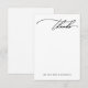 Tarjeta de agradecimiento simple y moderna con letra a mano en negro y nombre personalizado en blanco