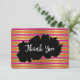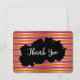 Una carta de agradecimiento, con papel de aluminio perlas escogido para darle una funda de bonito. Si cambias el papel, el color será plano. Diseñado con un elegante patrón compuesto por rayas horizontales metálicas rosadas, naranjas y falsas de oro. Una moderna y fresca salpicadura negra invadió el centro con tu texto en el medio.