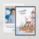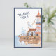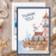 Una tarjeta de agradecimiento costera suave con detalles de un faro pintado a mano, barco de vela, ave marina y conchas marinas. La parte trasera se puede personalizar con su propio mensaje y la foto favorita de la fiesta de cumpleaños.