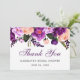 Tarjeta de agradecimiento para la despedida de soltera con flores púrpura violeta ultra - Letra cursiva púrpura