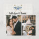 Hermosos elementos florales de mezclilla azul acentuados con detalles de flechas bohemianas audaces dan a este diseño muchas buenas vibras. Fondo de madera rústica, pintura blanqueada y estilo de acuarela realista aportan textura y encanto elegantes. Natural y fresco para una celebración de boda contemporánea.