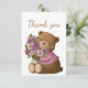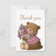 Tarjeta De Agradecimiento Gracias Teddy Bear Purple Flower Bouquet