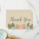 Mostrando un diseño que muestra la hermosa flora tropical, este encantador diseño presenta un fondo beige, "Gracias" está escrito en negrita en fuente marrón y una flor azul claro. Las plantillas fáciles de rellenar hacen que la personalización sea sencilla. ¡Personaliza tu tarjeta de agradecimiento hoy mismo!