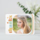 Esta tarjeta de agradecimiento para graduación de fotos multicolor presenta un tema retro con colores boho. La foto cuadrada está acentuada con esquinas redondeadas. El reverso le ofrece texto personalizado para que añada su propio mensaje de agradecimiento.