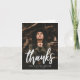 Celebra tu logro con estas tarjetas de agradecimiento a tu graduación de moda que incluyen tu foto y un elegante "agradecimiento" en letras de guiones blancos. Personalice la parte delantera de esta tarjeta plegada añadiendo su nombre y año de graduación para un toque personalizado. El interior proporciona mucho espacio para tu mensaje de agradecimiento escrito a mano o con tipeo, lo que facilita mostrar aprecio a amigos y familiares. Perfecto para los graduados que quieren combinar diseño moderno con expresión personal, estas tarjetas de agradecimiento de graduación fotográfica son una manera memorable de agradecer su apoyo.