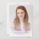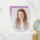Moderna y moderna carta de agradecimiento por graduación con una foto vertical personalizado. Las palabras "Gracias" aparecen en la sobreescritura de escritura a mano morada, con el nombre del graduado y el año de graduación debajo en letra sans serif. Reemplace fácilmente la imagen de muestra con la foto de su propio graduado. Una pantalla de degradado blanco ayuda a asegurar que aparece el texto. El lado inverso presenta un borde falso purpurina morado sobre un fondo sombrío.Personalizar el texto con su propia nota de agradecimiento, o elimínelo para dar espacio a mensajes individuales escritos a mano.