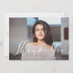 Tarjeta de agradecimiento para graduación simple y elegante que incluye la foto horizontal del graduado con "Gracias" en un elegante guión en blanco. Personalice la parte delantera de la tarjeta de agradecimiento de graduación agregando el nombre del graduado y el año de graduación. La tarjeta se invierte para mostrar el mensaje escrito a mano o con tipeo. La tarjeta de agradecimiento es perfecta tanto para graduados de secundaria como universitarios.