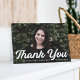 Celebra tu logro con nuestra simple y elegante carta de agradecimiento por graduación. Este diseño moderno muestra tu foto horizontal de graduación con "Gracias" en negrita y blanco, creando un toque elegante y personal. Personalizar el frente con tu nombre y año de graduación para una carta verdaderamente única. En el interior, la tarjeta doblada presenta un patrón de arco geométrico en blanco y negro de moda en la parte superior, dejando espacio debajo para el mensaje escrito a mano o escrito a máquina en la parte inferior. Perfecto para expresar gratitud a amigos y familiares de una manera memorable y elegante!