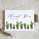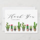 Envía agradecimiento a tu familia y amigos con esta tarjeta de agradecimiento personalizable. Cuenta con suculentas y cactus en macetas de acuarela. Personaliza esta tarjeta de agradecimiento de cactus agregando tus detalles. Esta tarjeta de agradecimiento boho es perfecta para bodas, graduaciones, cumpleaños y más.