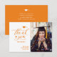 Naranja Moderno Elegante Guión Foto Graduación Minimalista Tarjeta De Agradecimiento. "Gracias" a tu familia y amigos con esta hermosa tarjeta de agradecimiento. Todos los textos están preorganizados para que puedas personalizarlos fácil y rápidamente con tus propias palabras.