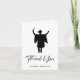 Tarjeta de agradecimiento moderna por su graduación con un ilustracion de silueta de un feliz graduado celebrando en su gorra y vestido, "Gracias" en un guión elegante y su nombre en una tipografía simple. Agregue un mensaje de agradecimiento personalizado en el interior y su nombre en un guión parecido a una firma, o deje en blanco una nota manuscrita.