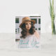 Tarjeta de agradecimiento para la graduación de una foto moderna que incluye la foto vertical del graduado con "gracias" en un overlay manuscrito verde azulado de caligrafía. Personalice la parte delantera de la tarjeta de agradecimiento de graduación agregando el nombre del graduado y el año de graduación. El interior de la tarjeta plegada de agradecimiento de graduación presenta un patrón geométrico punteado verde azulado y blanco a la izquierda con su mensaje escrito a mano o escrito a mano a la derecha.