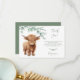 Invite a tus amigos y familiares a celebrar el cumpleaños de tu hijo con estas adorables invitaciones de cumpleaños, accesorios de fiesta y regalos de ternero de las Highlands y vegetación de eucalipto. Esta invitación de cumpleaños de vaca presenta una ternera de las Highlands pintada a mano con acuarela, ¡perfecta para los amantes de la granja y las vacas! El diseño es moderno y trendy, con un esquema de color verde salvia simple y el texto "Holy Cow". DERECHOS DE AUTOR © 2023 Judy Burrows, Black Dog Art - Todos los derechos reservados. Tarjeta de agradecimiento de cumpleaños para niños con animales de granja y vegetación de ternera de las Highlands.