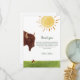 Tema de baby shower de animales de granja modernos y simples "Vaca Sagrada", diseño con acuarela de vaca highland linda y pájaro en el campo soleado al aire libre. Puede personalizar la palabra a través de "personalizar el templo".