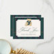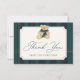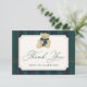 Thank your guests with this elegant baby shower thank you card showcasing a hand-painted watercolor teddy bear dressed in a navy and green plaid scarf. Below the illustration, “Thank You” is written in graceful green calligraphy, with space to add your name. The text is framed by a vintage-style cream design and paired with a watercolor plaid background in navy, green, and red for a traditional, old money aesthetic. The back provides room for a personalized note to complete your message of gratitude.