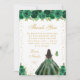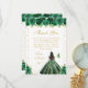 This elegant and glamorous birthday thank you card features a beautiful princess with dark hair and dark skin in a green ball gown. The text combines handwritten script and modern sans serif fonts for a classy and sophisticated look. The floral arrangements, butterflies and gold confetti create the perfect blend of rustic and chic.