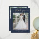 Tarjeta De Agradecimiento Guión azul elegante 2 Boda de foto guión dorado