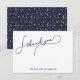 Tarjeta de nota de gracias con puntos de falso oro y guión bonito azul medianoche simple y moderno.