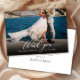 Moda Moderna Elegante Boda De Guión De Caligrafía Una Tarjeta De Gracias De Foto. Elegante plantilla de boda de agradecimiento con una foto completa en la parte delantera con el texto "Gracias" en un amplio y caprichoso guion tipográfico con letras a mano rápida revoloteando el tipo de letra sobre la imagen y al revés un mensaje de agradecimiento hecho previamente. Fácilmente para personalizar tu nombre y el mensaje de agradecimiento. Si prefiere escribir a mano la nota, simplemente elimine el texto de ejemplo para hacer más espacio. Si necesita ayuda o un elemento que coincida, por favor, póngase en contacto conmigo.