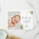 Una elegante tarjeta de agradecimiento para el bautizo o bautismo. Personalice con su foto y un mensaje especial de agradecimiento por el bautizo en tipografía chic en este diseño floral moderno de vegetación. Diseñado por Thisisnotme©