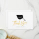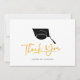 Personalizar fácilmente esta elegante y moderna tarjeta de agradecimiento con tu nombre haciendo clic en el botón "Personalizar". Esta tarjeta contiene una gorra de graduación y un guión moderno que dice "Gracias" en oro falso que está establecido.