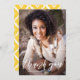Tarjeta de agradecimiento de graduación elegante con caligrafía blanca a mano con patrón de diamantes ikat amarillos. Esta tarjeta plana será perfecta para tarjeta de agradecimiento de boda o tarjeta de agradecimiento de graduación. Puedes personalizar la foto, textos y patrón de fondo. También está disponible una versión de postal.