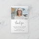 En la memoria amorosa doblada tarjeta de agradecimiento mostrando el nombre en una elegante letra manuscrita con texto personalizado debajo. Blanco o cualquier color de fondo. Mensaje personalizado y foto adentro.