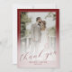 Tarjeta De Agradecimiento Guión moderno Rojo oscuro Boda de 2 fotos Gracias