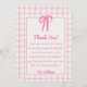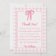 Tarjeta De Agradecimiento Hand Drawn Pink Gingham Bow Girl Baby Shower