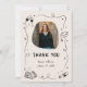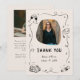 A whimsical graduation thank you card. Featuring a hand-drawn, quirky graduation cap, diploma, stack of books, champagne glasses, doodled frame, and handwritten text. The text "THANK YOU" is not editable, but all of the other text is editable. You can also change the colours. On the back of the thank you card is space for a longer message expressing your gratitude. If you need a different heading or other changes, please feel free to contact me.