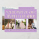 Modern and playful wedding thank you photo card featuring a text that says "You're part of our happily ever after" with 3 of your pictures. You can add another photo on the back with a message. Wisteria.
