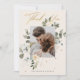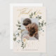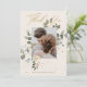 El diseño presenta una hermosa mezcla de floral pálida y vegetación muda de melocotón, marfil, champán y salvia, enmarcada en polvorientas hojas botánicas verdes, todo para sus próximas ceremonias bodas y eventos especiales. La frase "Gracias en oro" es una escritura caligráfica romántica que evoca un sentido romántico del ser. Fácilmente personalizar de frente y de vuelta con su impresionante foto e información personal de su elección.