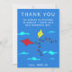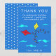 Tarjeta de agradecimiento de hermosas cometas rojo amarillo con nombre cumpleaños niños. Hermoso diseño para niños con dos cometas, uno de color amarillo y otro de color rojo. Las cometas están volando en el cielo entre nubes. Personaliza la tarjeta con el nombre de tu hijo y tu mensaje.